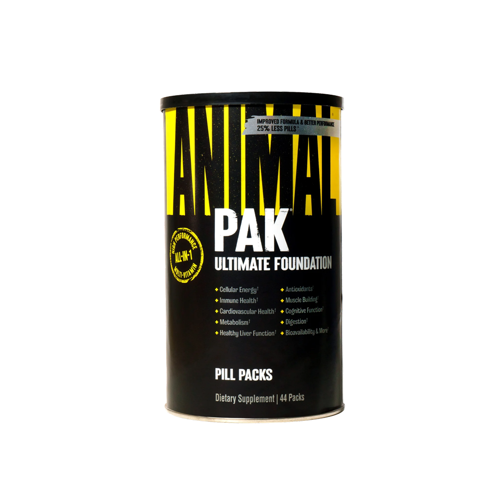 Animal Pak is complete nutrition loaded with 85+ highly absorbable nutrients that enhances training sessions and boosts energy in daily life through an efficient combination of vitamins, minerals, amino acids, antioxidants, digestive enzymes, carnitine, herbs and more. More than a multivitamin, Animal Pak fills your nutritional gaps ensuring you are primed for muscle growth and optimum performance as you chase your fitness goals. Benefits New and improved formula delivers better performance and 25% less pills (now only 8 pills) Concentrated formula delivering the benefits of 12 supplements in 1 convenient packet Science-backed, advanced formula, now with less pills and easier to swallow