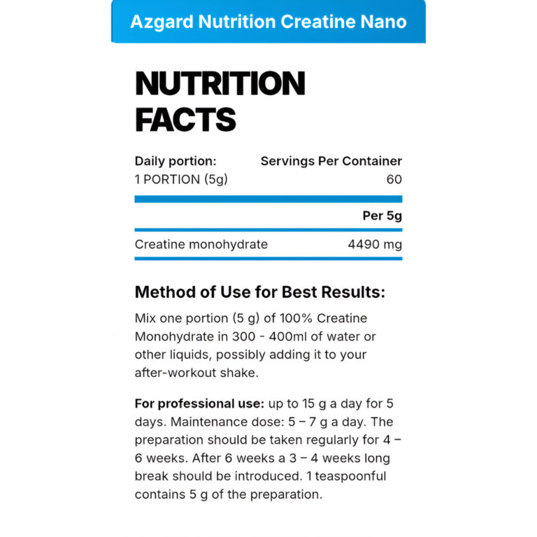 Pure Creatine Nano Monohydrate to increase muscle power. Each serving supplies a full 4.9 g of 100% pure Creatine Monohydrate to increase muscle power in successive bursts of short-term, high intensity, repeated exercise. Why Creatine Nano? contains 100% pure creatine monohydrate in nano form which is over 1250 times smaller particles than in micronized creatine, increase in absorption efficiency. Because of their NANO size, they start to behave more like ions, becoming very electro-static and therefore easily pass through cell membranes, allowing assimilation straight into the bloodstream. This also means that you have to use a lot less product for the same result as our competitor’s products.
