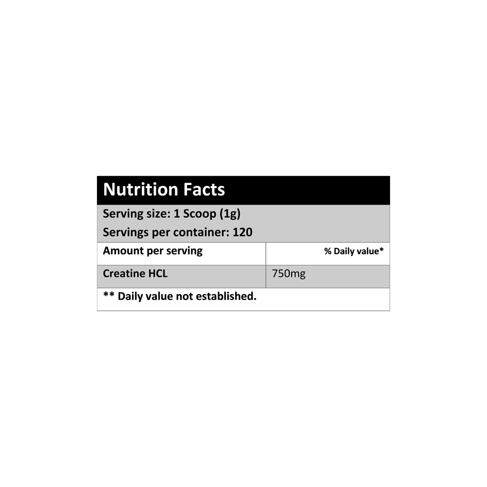 Creatine Hydrochloride (HCL) offers superior solubility and unmatched bioavailability to fuel your muscles fast. Creatine HCL delivers a form of Creatine that may be easier on your stomach than regular Creatine Monohydrate. Creatine HCL offers a new standard for lifters who are looking for a high-solubility creatine solution for their training and supplementation regimens.
