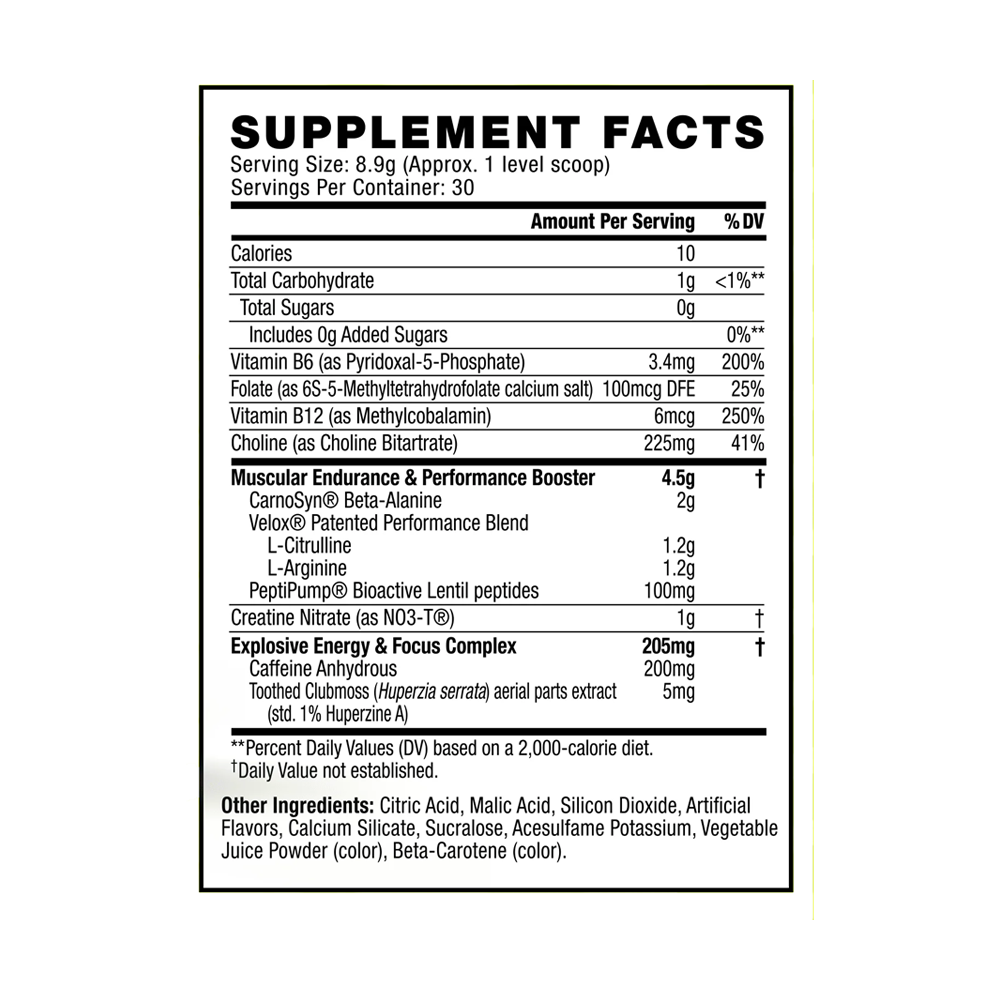 THIS PRODUCT IS ONLY INTENDED TO BE CONSUMED BY HEALTHY ADULTS, 18 YEARS OF AGE OR OLDER. Do not use this product if you are pregnant, nursing, or are currently taking nitrates for chest pain or if you are taking medication used to treat erectile dysfunction such as PDE-5 inhibitors. Before using this product, consult a licensed, qualified, healthcare professional, including but not limited to, if: you are taking antidepressants such as MAOI (Monoamine Oxidase Inhibitor) or SSRI, blood thinners, nonsteroidal anti-inflammatory drugs, pseudoephedrine, or you are taking any other dietary supplement, prescription drug or over-the-counter medication; or if, you suspect you have or have been treated for, diagnosed with or have a family history of, any medical condition, including but not limited to: high or low blood pressure, diabetes, glaucoma, anxiety, cardiovascular, psychiatric or seizure disorders, cardiac arrhythmia, stroke, heart, liver, kidney or thyroid disease, or difficulty urinating due to prostate enlargement. This product contains Caffeine and should not be used by individuals wishing to eliminate Caffeine from their diet or in combination with Caffeine or stimulants from other sources including but not limited to, coffee, tea, soda, or other dietary supplements and medications. Discontinue 2 weeks prior to surgery. Immediately discontinue use and contact a medical doctor if you experience any adverse reaction to this product. Do not exceed recommendations for Suggested Use. Use only as directed. Do not use if safety seal is broken or missing. Store in a cool dry place. KEEP OUT OF REACH OF CHILDREN.