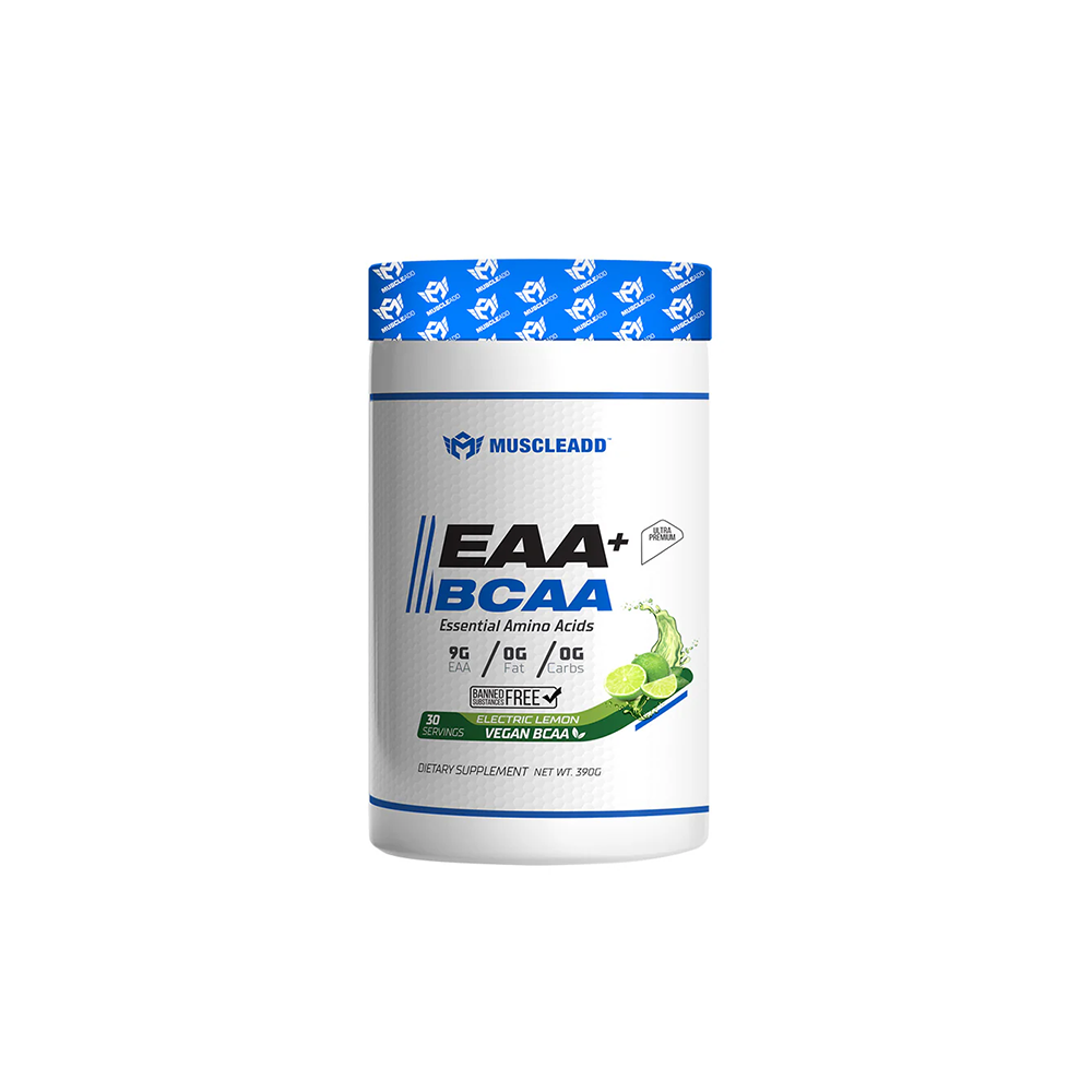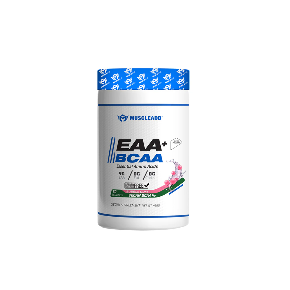 Muscle Add EAA + BCAA Essential Amino Acids is a formula made of vegan BCAA & EAA.