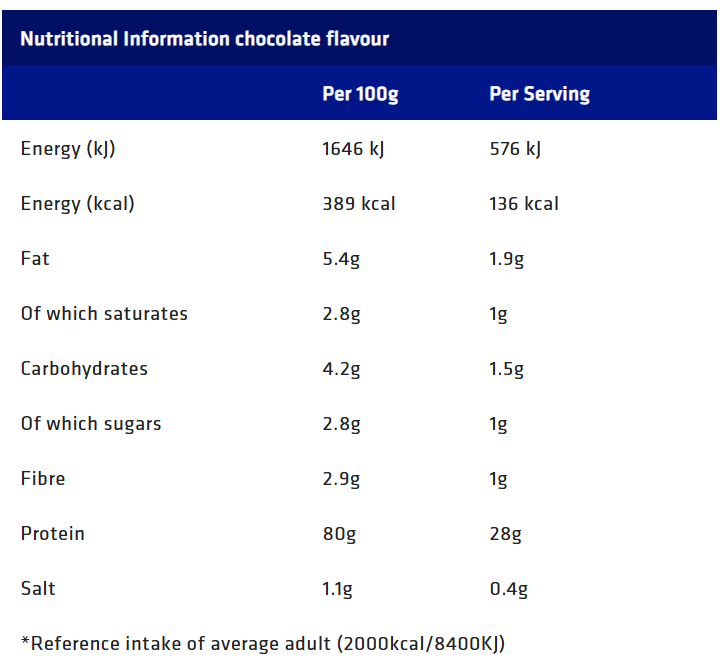 Mix 2 scoops (35 g) with 200 ml of water for 27 g of protein.